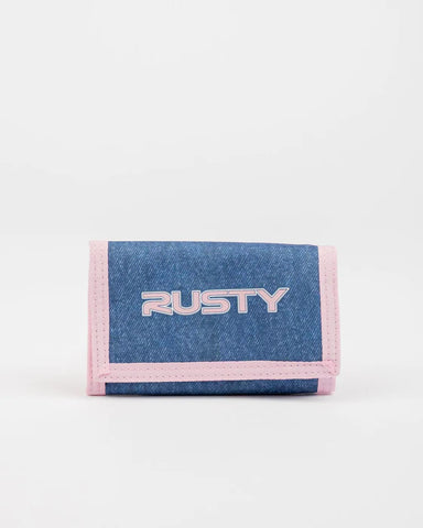 Velcro Tri-fold Wallet With Rusty Screen Print Logo. 100% Polyester Stock 600d White Polyester