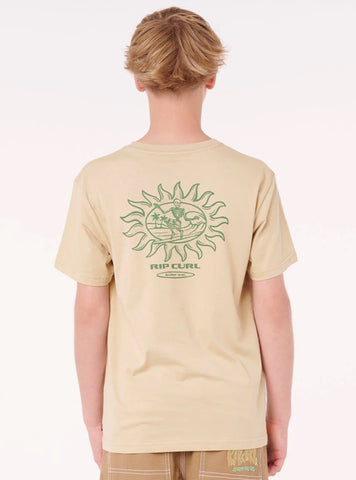 The Island Paradiso Art Tee for boys (8–16 years) offers relaxed fit in soft cotton jersey with front and back print. Featuring short sleeves and woven flag label, the Island Paradiso Art Tee is a playful and durable surfwear staple.