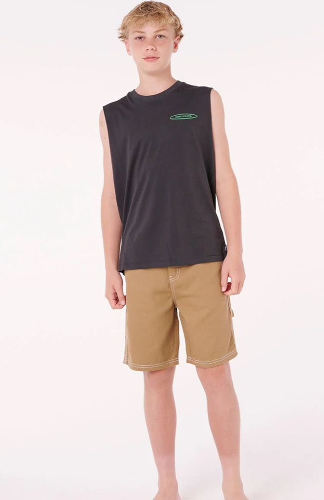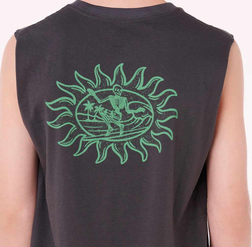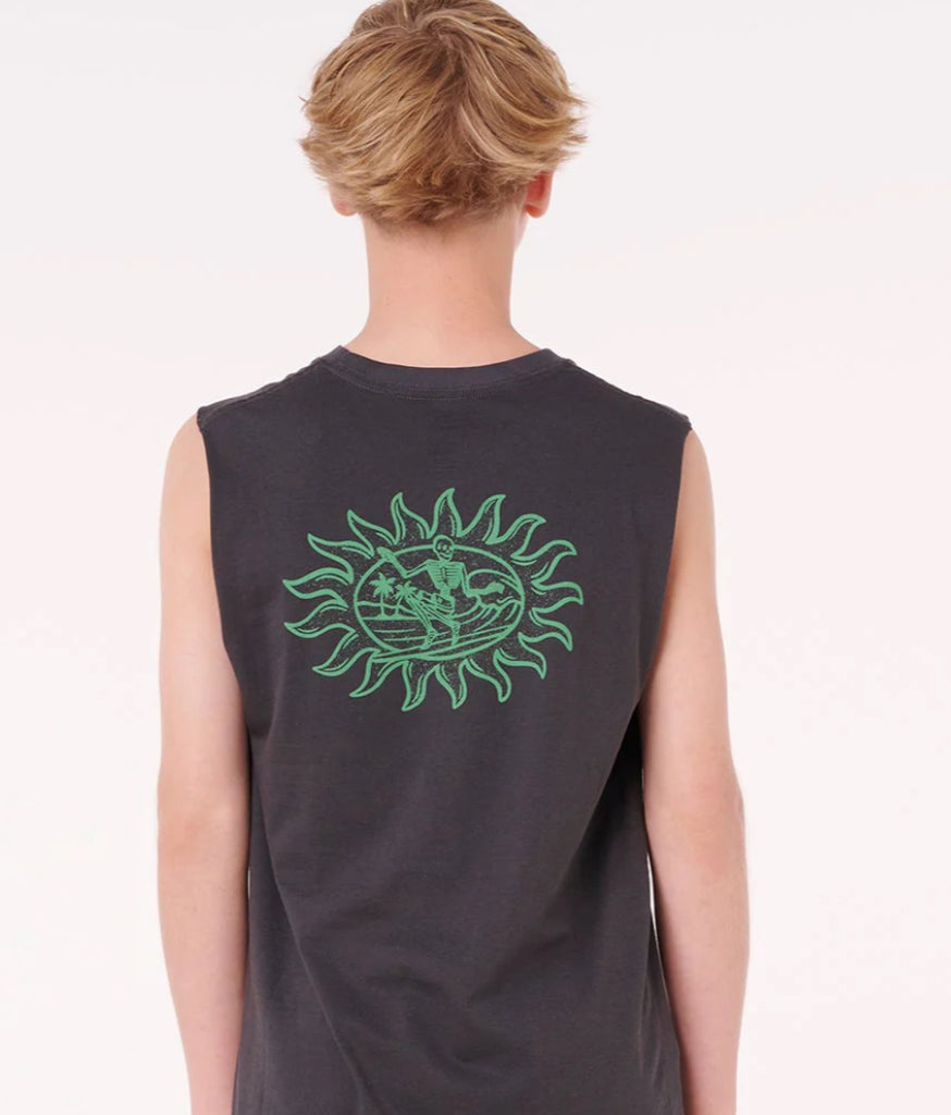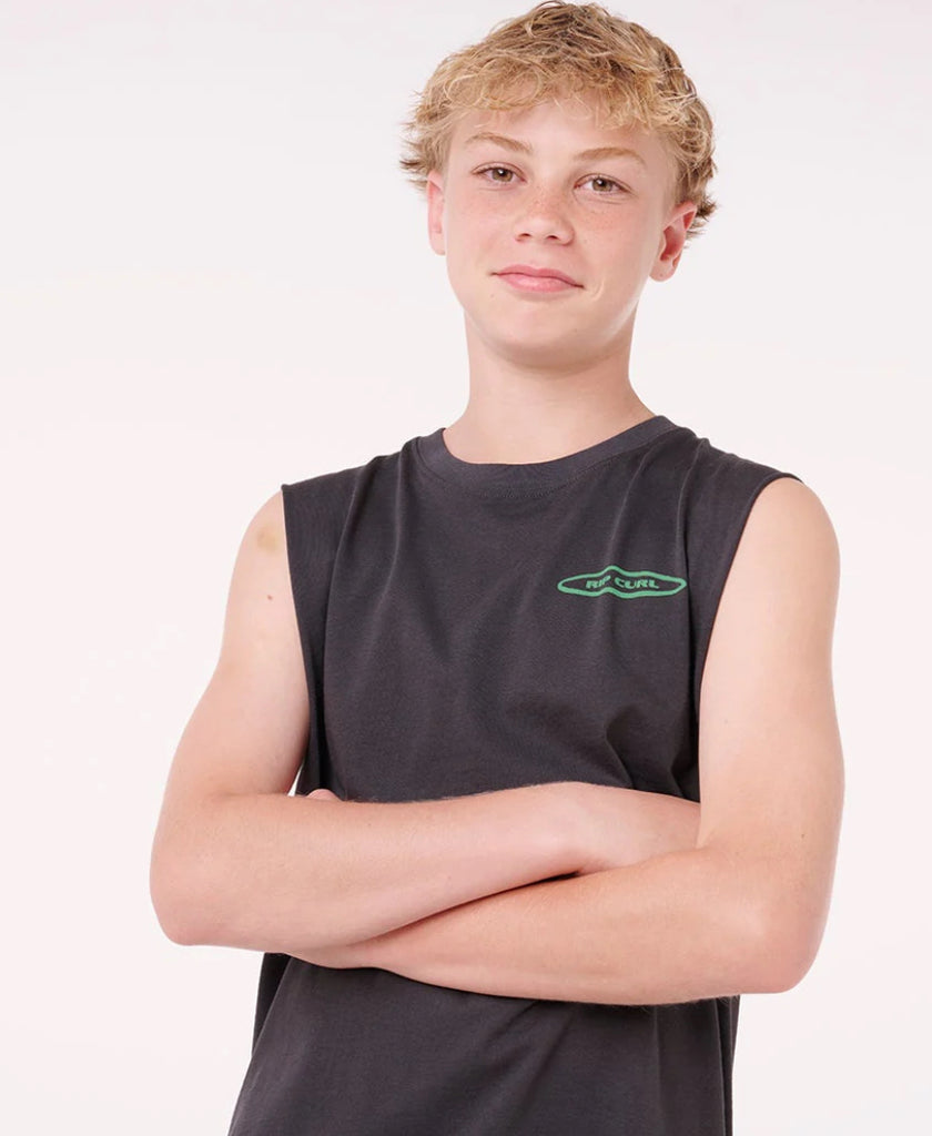 The Island Paradiso Muscle for boys (8–16 years) is cut from 100% cotton jersey in a muscle fit. Featuring front and back print, woven flag label, and soft cotton construction, the Island Paradiso Muscle combines relaxed surf style with everyday comfort.