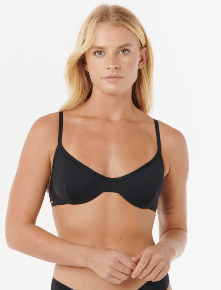 Engineered for full support without giving up style, the Classic Surf D-DD Top features a balconette shape with hidden underwire, removable padding, adjustable straps, and clean metal trim. Surf-ready, lounge-approved.
