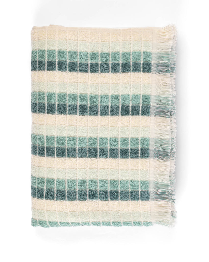 Step back in time with Horizon. This retro-inspired towel combines luxe terry with debossed squares and nostalgic 70s-style stripes. Perfect for those who love a retro vibe with a modern twist.