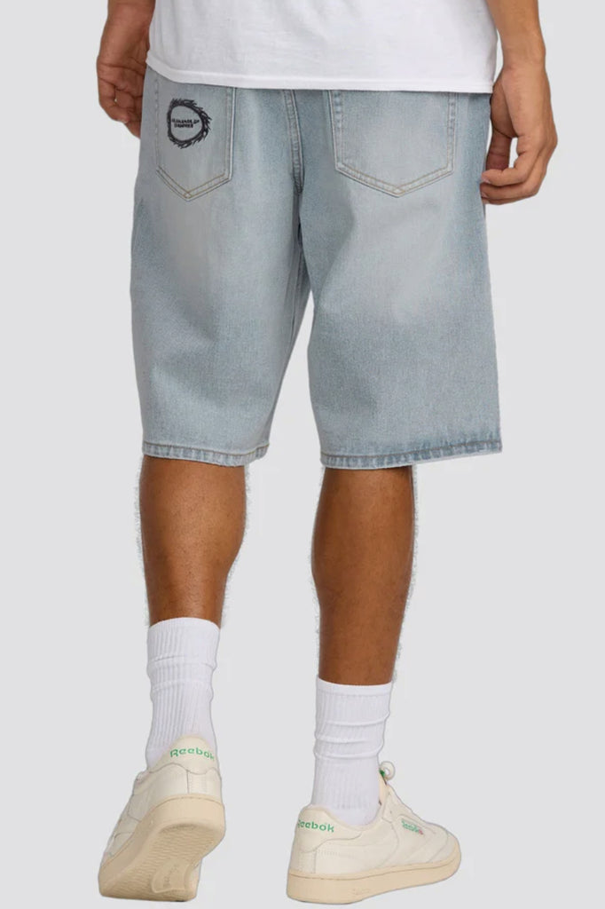 Product: Denim Shorts5 pocket denim short12.5 oz Cotton denimEasy fit22in Outseam5 Pocket stylingEmbroidery at wearers back left pocketMerrowed edge patch at wearers back right pocket