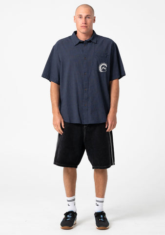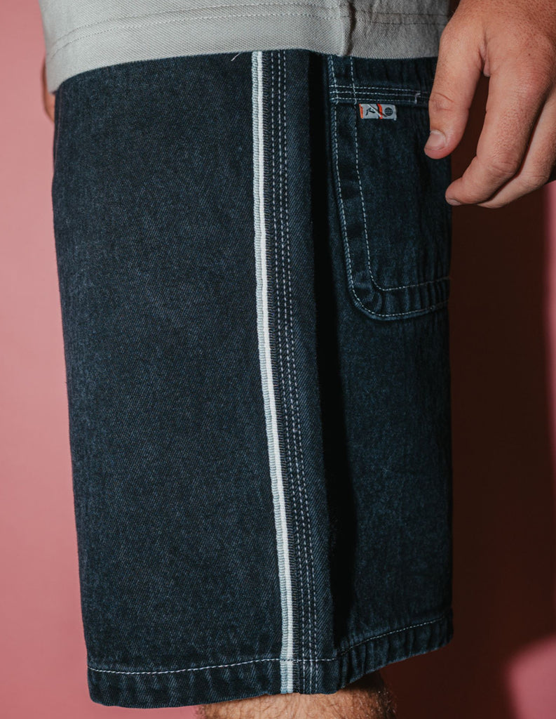 Baggy fit jort with side seam tape - rusty embroidery and 22.5 inch out seam
