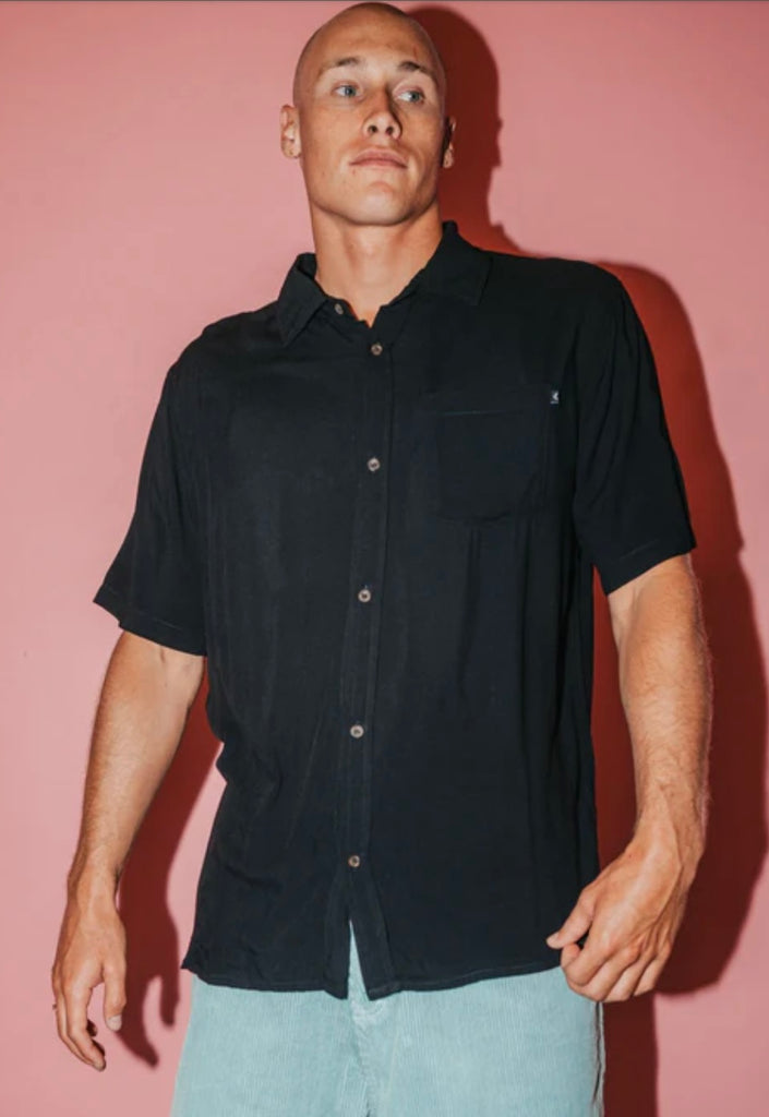 Og Fit Short Sleeve Shirt With Chest Pocket And Curved Hem. 100% Rayon