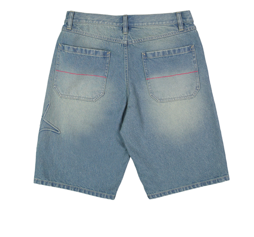 15 oz Denim, 22", Relaxed fit, Fixed waist with button closure and zip fly,5 pocket denim style, 2 back patch pocket and 2 front curved pocket with hidden coin pocket,Dual coin pocket at front right pocket, heritage Billabong inspired branding as discharge print on wearers left leg, contrast stitch detail on front bar tacks and back pockets