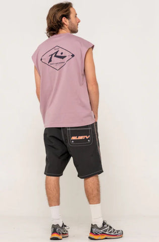 Standard Fit Muscle With Rusty Chest And Back Print - Pre Shrunk. 100% Cotton Midweight Jersey