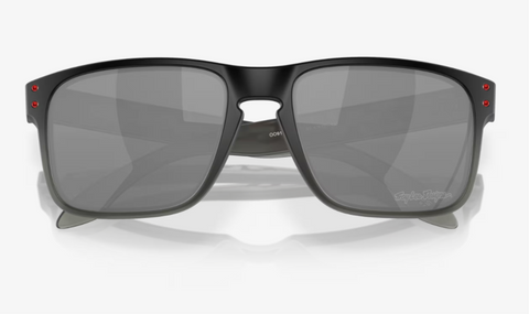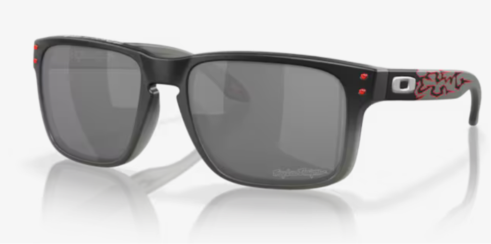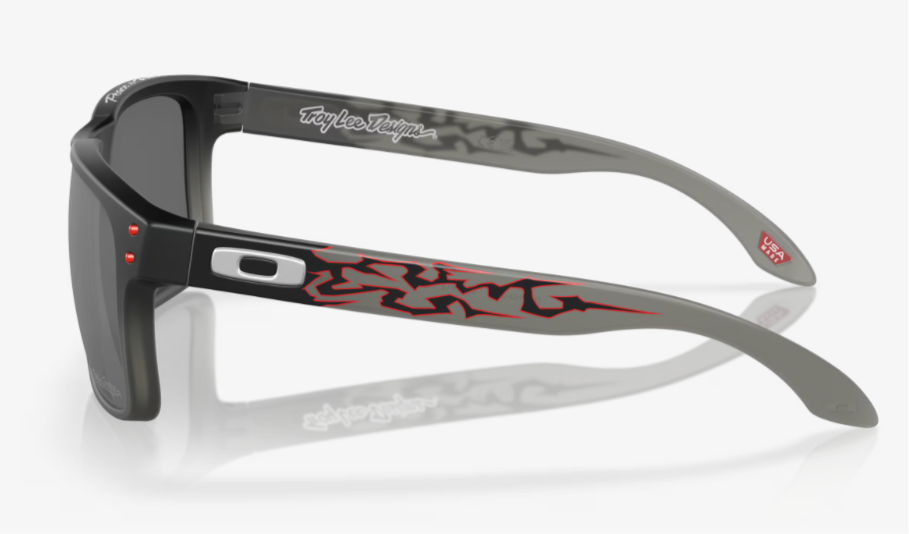 Designed for everyday wear and full throttle moments, the TLD® Holbrook™ is infused with racing spirit. Featuring a matte black paint that fades to expose a grey smoke frame, anodized red rivets and a paint treatment on the temples, these Holbrooks scream speed. With the satin silver Peace & Wheelies pad print on top of the frame and a laser etched Troy Lee Designs mark on the Prizm™ Grey lenses, you’ll see the next gate drop with enhanced color and contrast.