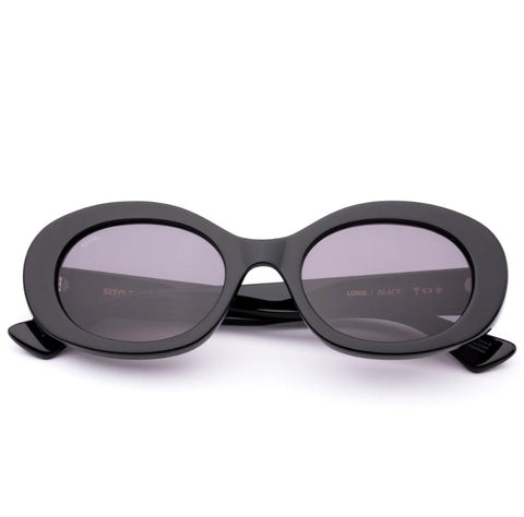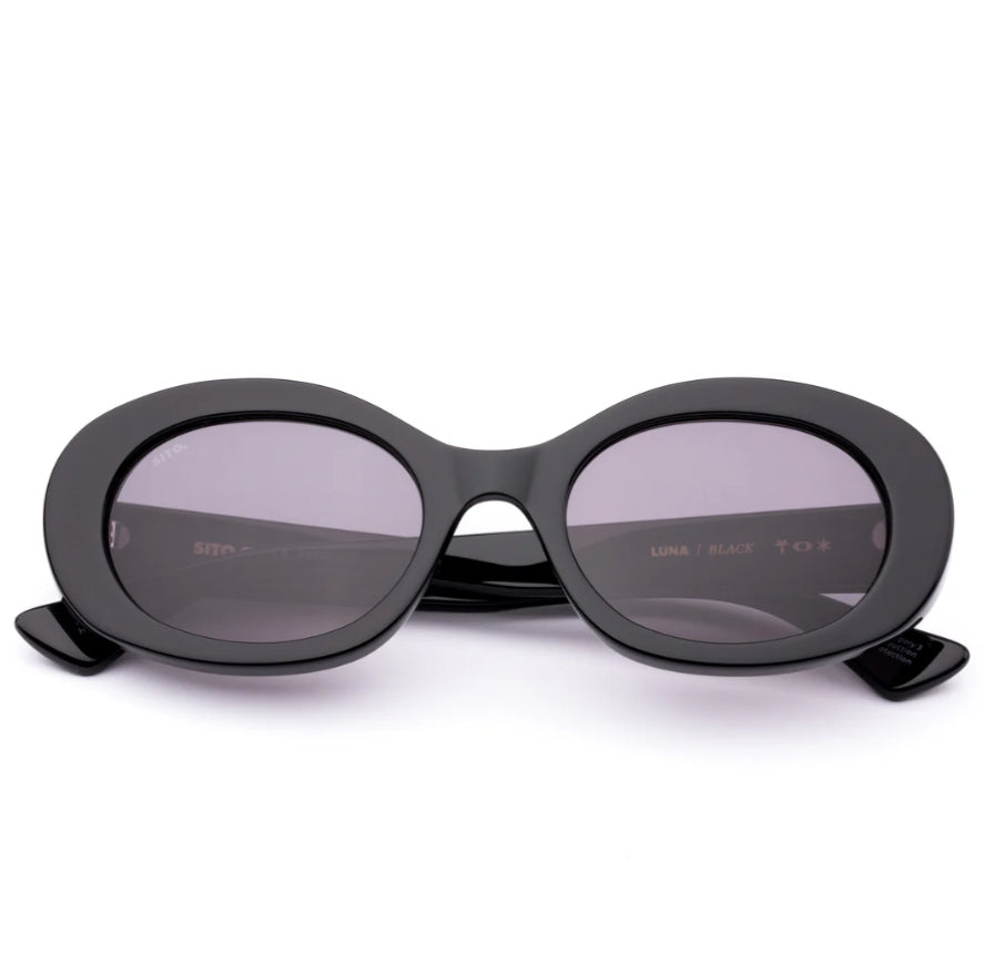 Timeless yet effortlessly cool, Luna in Black by Sito Shades blends retro charm with modern edge. Its gently oversized lenses and curved lines frame the face beautifully, creating a soft yet confident look. Handcrafted from a more eco-friendly acetate in a deep, glossy black and fitted with premium UV-protective grey lenses, Luna offers conscious design with all-day comfort. Designed in Australia for those who like their style slow, their days unhurried, and their presence unforgettable.