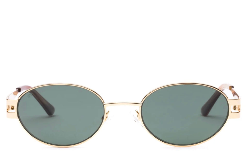 Style with Stevie. A stylish blend of nostalgic charm and contemporary sophistication. Taking inspiration from the iconic '90s, these sunglasses feature a sleek oval shape with carefully tapered temples that add a refined touch to any look. Crafted with a modern metal frame with chintz coloured plant based acetate detailing, the Stevie sunglasses are the ultimate accessory to elevate your ensemble, whether you're lounging by the beach or dressing up for an event.