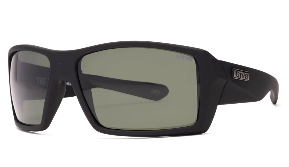 The Edge - the ultimate style that suits many face shapes, with a large rectangular black frame and a green tint lens.