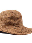 LARGE BRIM WOVEN BEACH HAT WITH RUSTY METAL COIN TRIM.