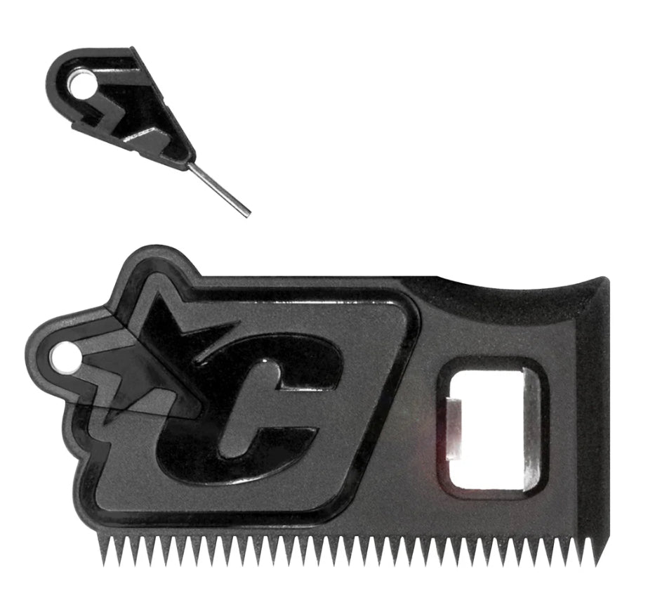 The Premium Wax Tool comes with a removable stainless steel allen key, wax comb, scraper and bottle opener. Everything you need for surf sessions around home or missions abroad.